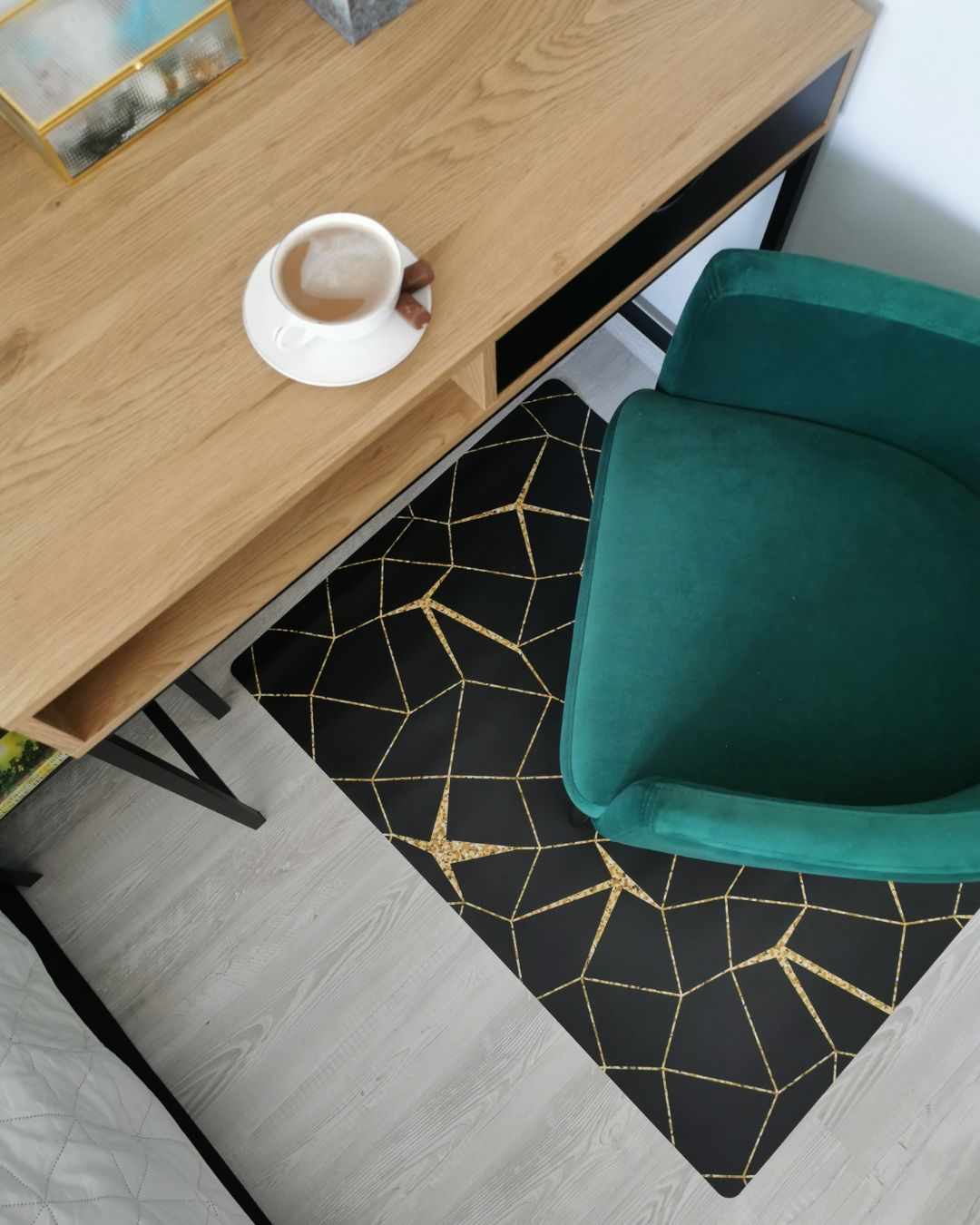 Tapis de chaise est idéal pour aussi bien au bureau qu'à la maison. Les sols des bureaux n'ont pas une vie facile, c'est pourquoi ils ont donc besoin d'une protection supplémentaire contre les dommages. De plus, le matériau à partir duquel les tapis sont fabriqués est facile à entretenir, il suffit de l'essuyer de temps en temps avec un chiffon humide avec un peu de détergent doux. En plus de sa fonctionnalité, Tapis de protection de sol Mosaïque or et noire a également udes qualités esthétiques indiscutables, grâce au choix illimité de modèles. Utilisez-le dans votre intérieur !